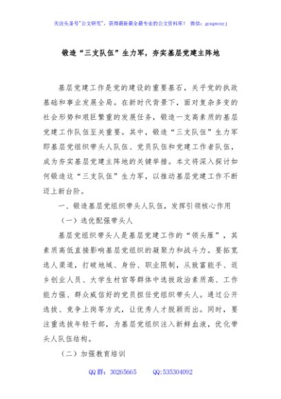 锻造“三支队伍”生力军,夯实基层党建主阵地