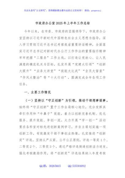 / 市政府办公室2025年上半年工作总结