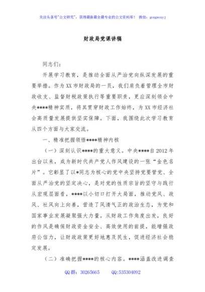 / 财政局党课讲稿