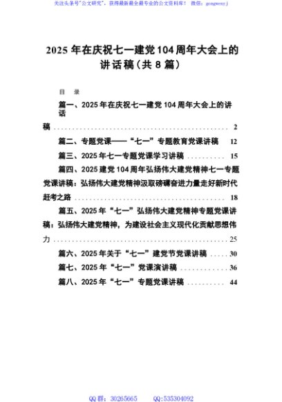/ (8篇)2025年在庆祝七一建党104周年大会上的讲话稿