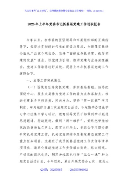/ 2025年上半年党委书记抓基层党建工作述职报告
