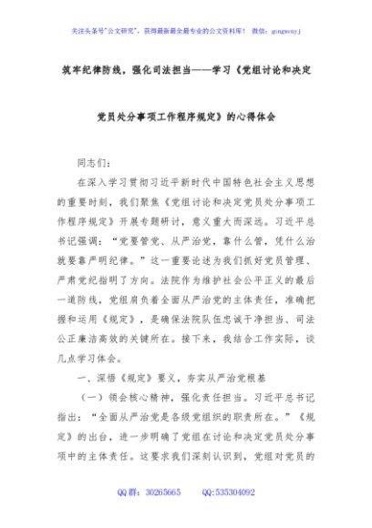 / 筑牢纪律防线,强化司法担当——学习《党组讨论和决定党员处分事项工作程序规定》的心得体会