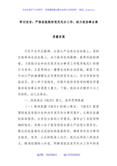 / 研讨发言:严格依规做好党员处分工作,助力政协事业高质量发展
