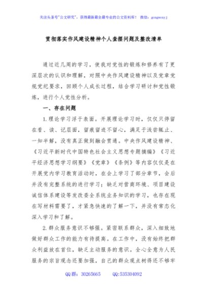 贯彻落实作风建设精神个人查摆问题及整改清单