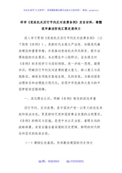 / 研学《党政机关厉行节约反对浪费条例》发言材料:精髓筑牢廉洁防线汇聚发展伟力