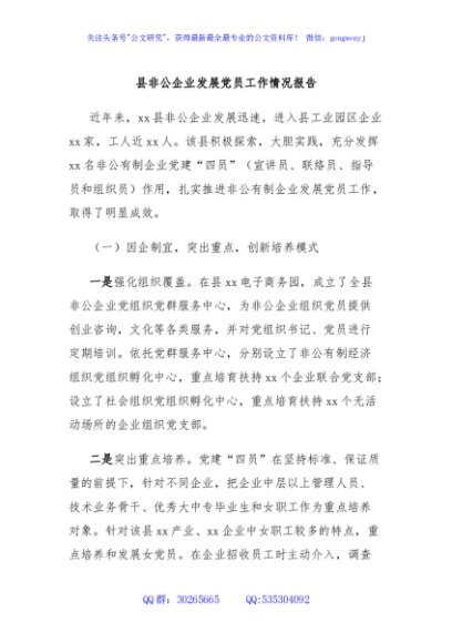 / 县非公企业发展党员工作情况报告