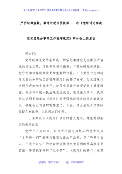 / 严明纪律规矩,锻造过硬法院铁军——在《党组讨论和决定党员处分事项工作程序规定》研讨会上的发言