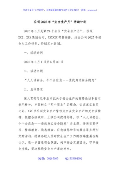 / 公司2025年“安全生产月”活动计划