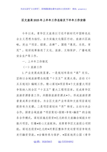/ 区文旅局2025年上半年工作总结及下半年工作安排
