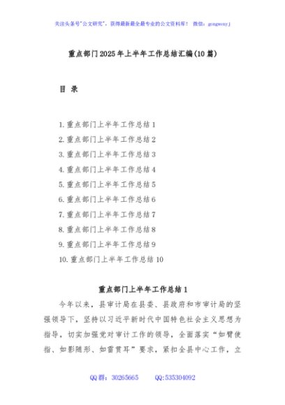 / (10篇)重点部门2025年上半年工作总结汇编