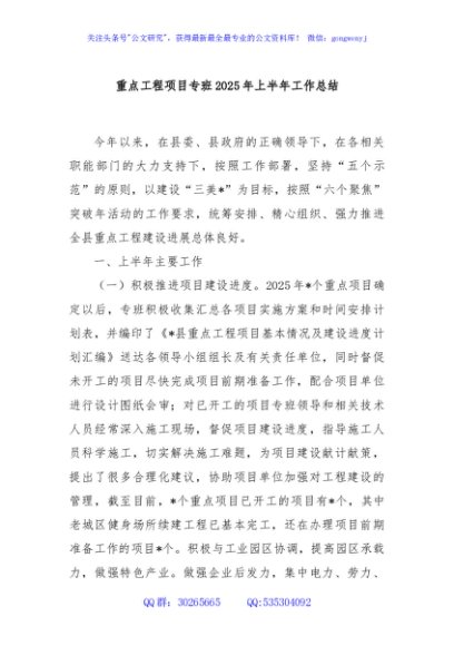/ 重点工程项目专班2025年上半年工作总结