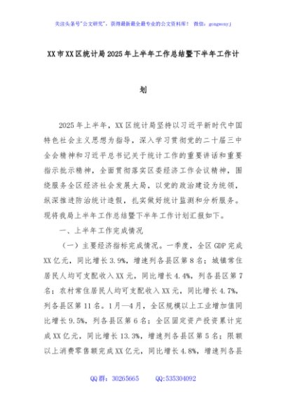 / XX市XX区统计局2025年上半年工作总结暨下半年工作计划
