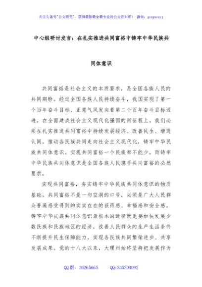 中心组研讨发言:在扎实推进共同富裕中铸牢中华民族共同体意识