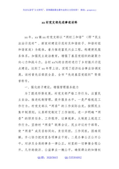 / xx村党支部先进事迹材料