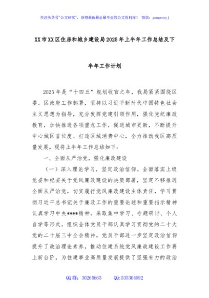 / XX市XX区住房和城乡建设局2025年上半年工作总结及下半年工作计划