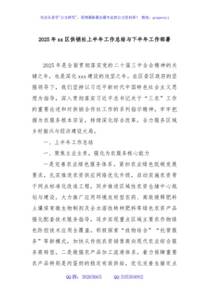 / 2025年xx区供销社上半年工作总结与下半年工作部署