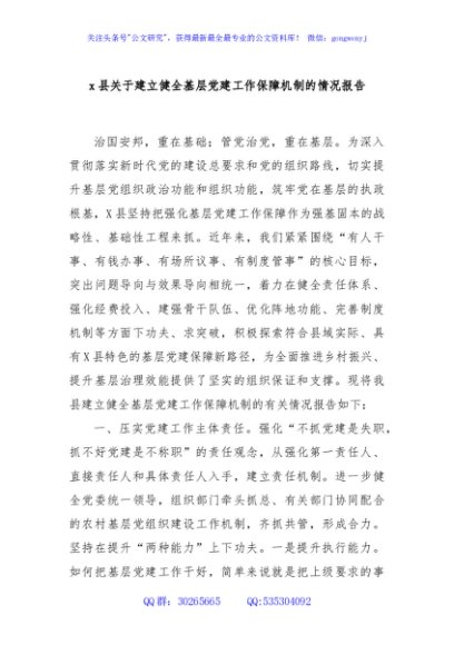 / x县关于建立健全基层党建工作保障机制的情况报告