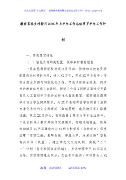/ 教育系统乡村振兴2025年上半年工作总结及下半年工作计划