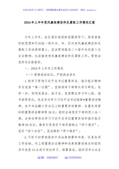/ 2024年上半年党风廉政建设和反腐败工作情况汇报