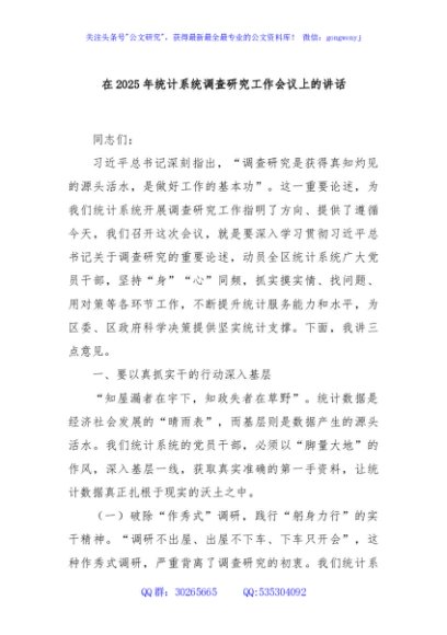 / 在2025年统计系统调查研究工作会议上的讲话