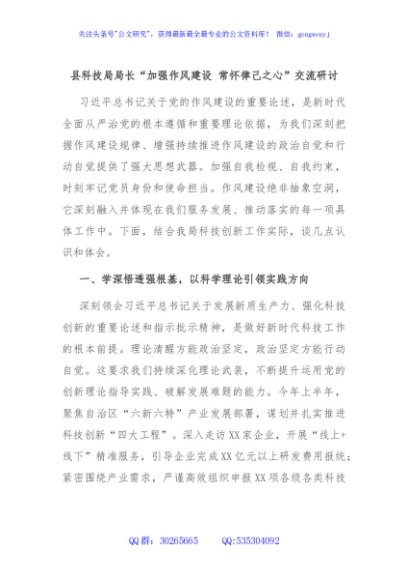 / 县科技局局长“加强作风建设 常怀律己之心”交流研讨