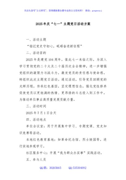/ 2025年庆“七一”主题党日活动方案