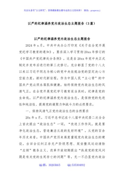 / (3篇)以严的纪律涵养党内政治生态主题报告