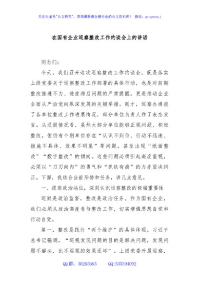 / 在国有企业巡察整改工作约谈会上的讲话
