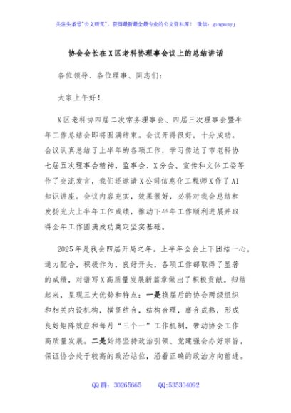 / 协会会长在X区老科协理事会议上的总结讲话