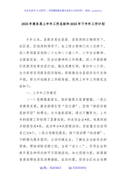 / 2025年商务局上半年工作总结和2025年下半年工作计划