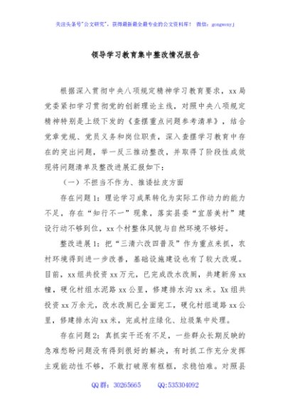/ 领导学习教育集中整改情况报告