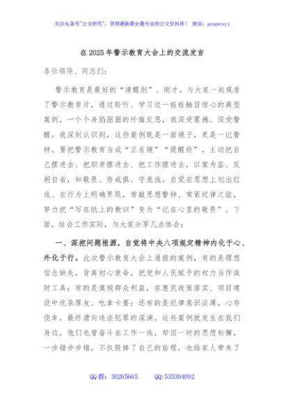 / 在2025年警示教育大会上的交流发言
