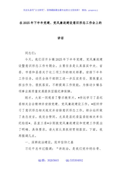 / 在2025年下半年党建、党风廉政建设意识形态工作会上的讲话
