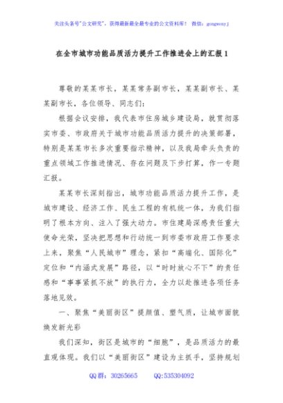 / 在全市城市功能品质活力提升工作推进会上的汇报1