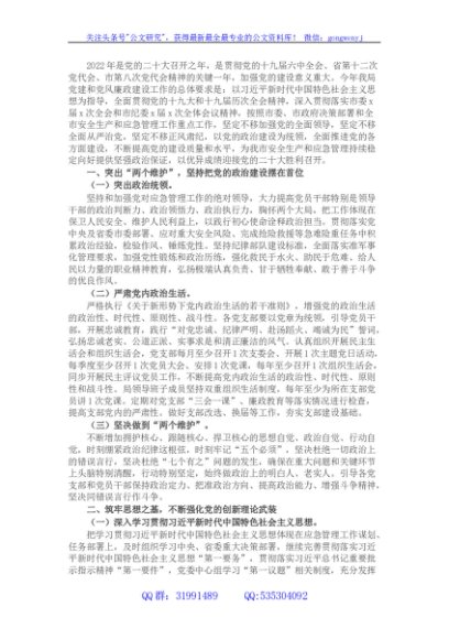 城市应急管理局委员会2022年党建和党风廉政建设工作要点
