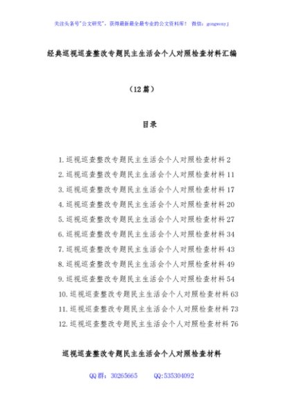 / (12篇)经典巡视巡查整改专题民主生活会个人对照检查材料汇编
