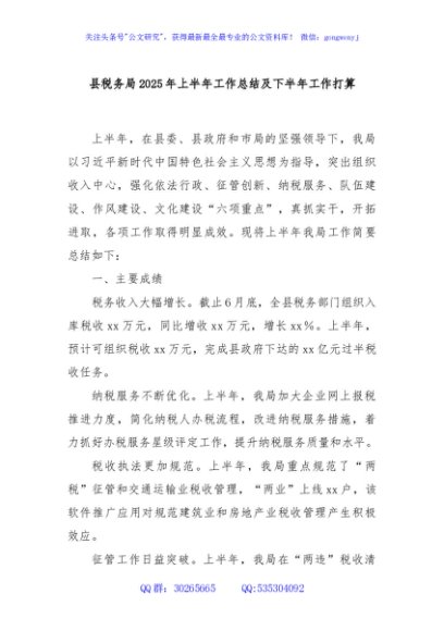 / 县税务局2025年上半年工作总结及下半年工作打算