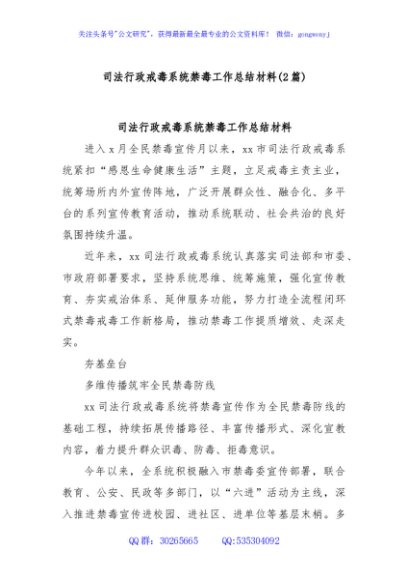 / (2篇)司法行政戒毒系统禁毒工作总结材料