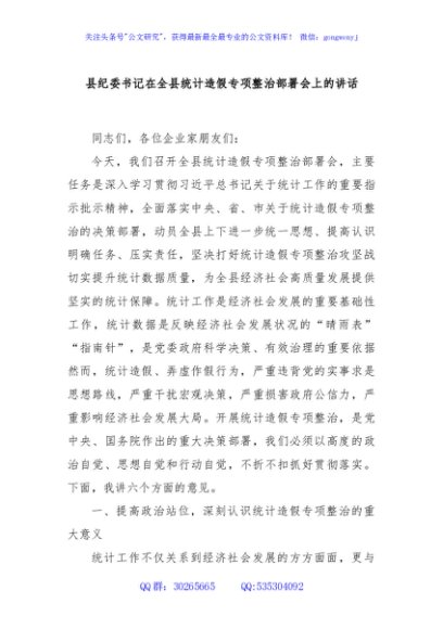 / 县纪委书记在全县统计造假专项整治部署会上的讲话