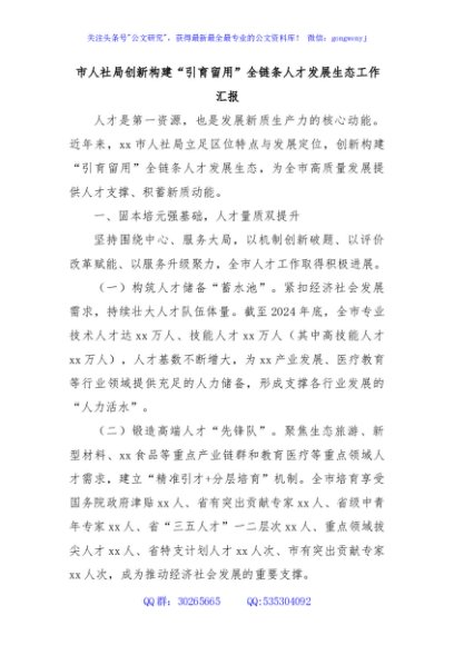 / 市人社局创新构建“引育留用”全链条人才发展生态工作汇报