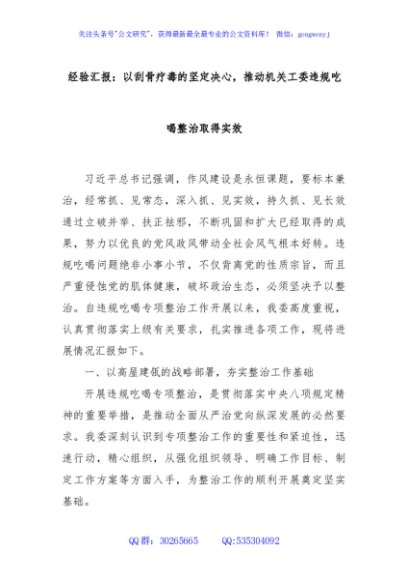 / 经验汇报:以刮骨疗毒的坚定决心,推动机关工委违规吃喝整治取得实效