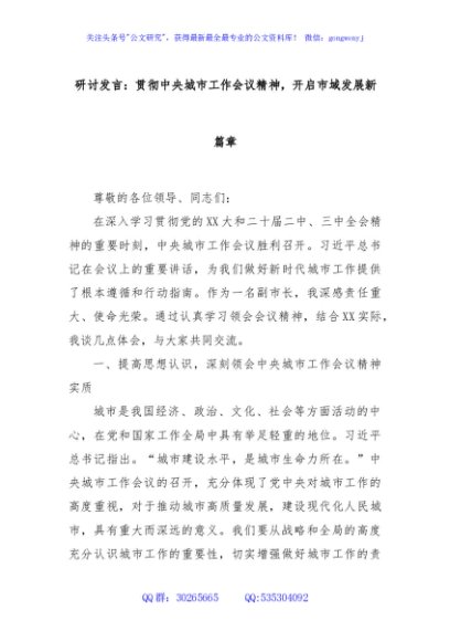研讨发言:贯彻中央城市工作会议精神,开启市域发展新篇章