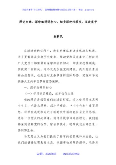 / 理论文章:深学细研明初心,细查深挖祛顽疾,实改实干树新风