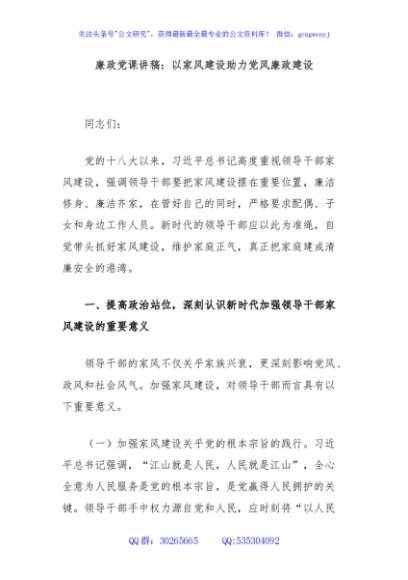 / 廉政党课讲稿:以家风建设助力党风廉政建设
