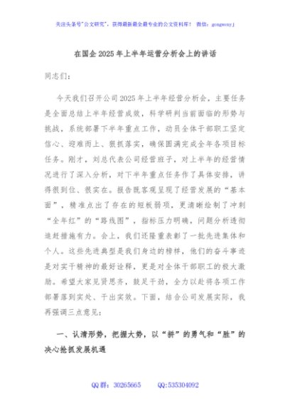 / 在国企2025年上半年运营分析会上的讲话