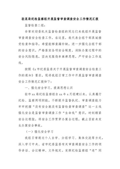 / 驻某局纪检监察组开展监督审查调查安全工作情况汇报