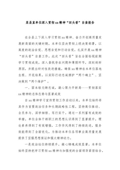 / 某县直单位深入贯彻xx精神“回头看”自查报告