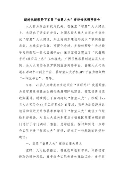 / 新时代新形势下某县“智慧人大”建设情况调研报告