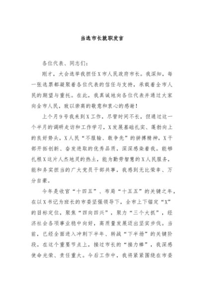 / 当选市长就职发言