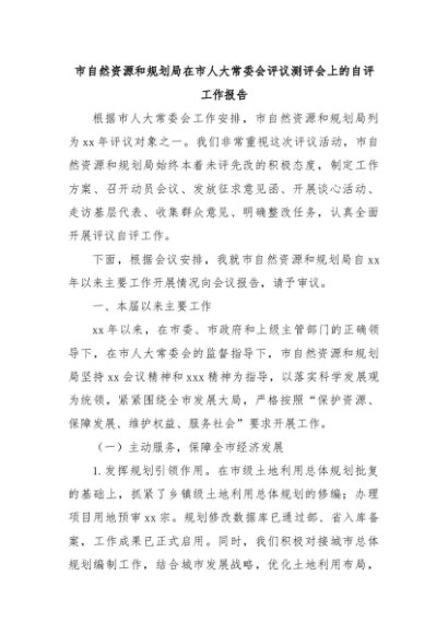 / 市自然资源和规划局在市人大常委会评议测评会上的自评工作报告